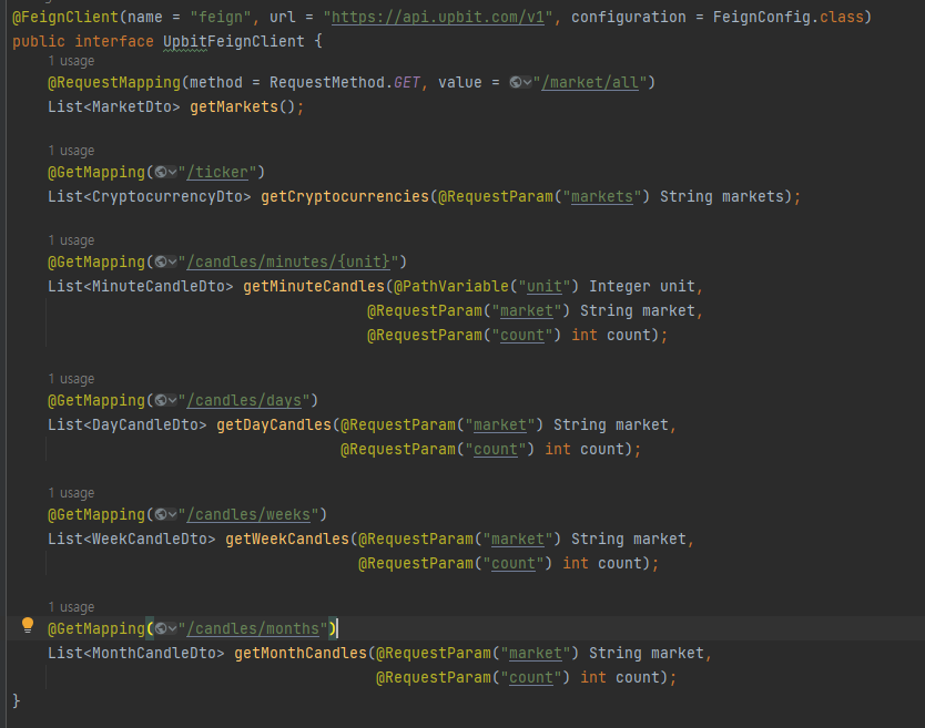 [Spring Cloud] Feign Client로 업비트 시세조회 API 사용하기Backend/Spring 2022. 6. 2. 00:07728x90