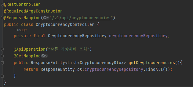 졸업 프로젝트를 진행하는데, 백엔드에서 업비트 Open API로 가상화폐 시세 조회하는 과정이 필요했기에